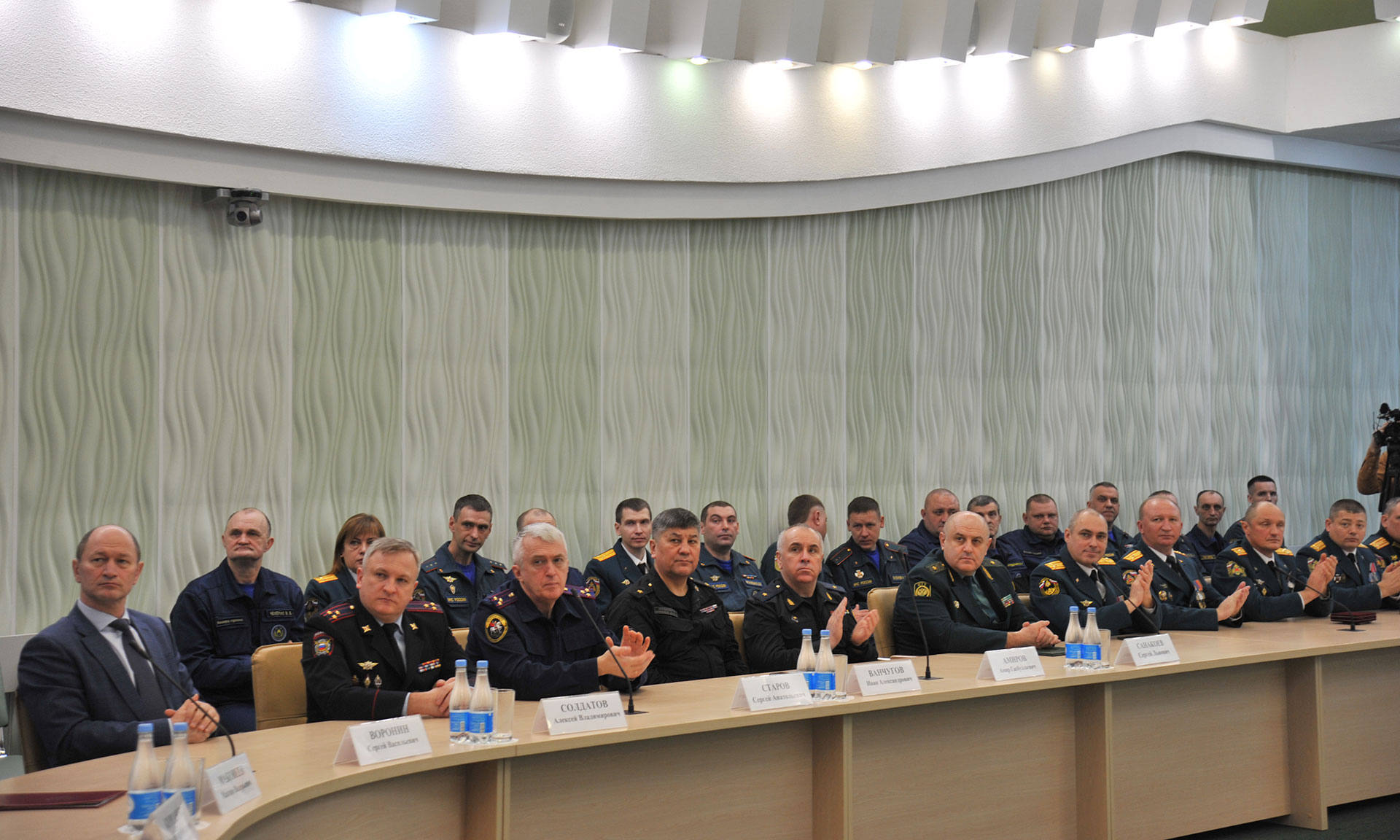 В этом зале собрались сегодня те, кто всегда находится «на передовой» обеспечения безопасности жизни наших граждан — там, где людям нужна помощь: в завалах разрушенных строений, в огне пожаров, на затопленных территориях.