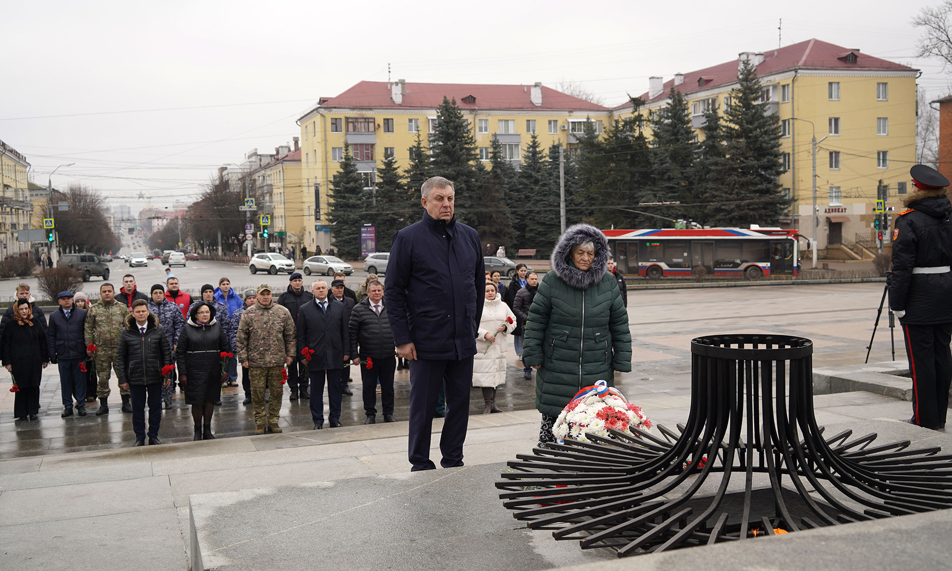 По завершении выступления Губернатор Александр Богомаз преподнес Тамаре Алексеевне букет цветов.