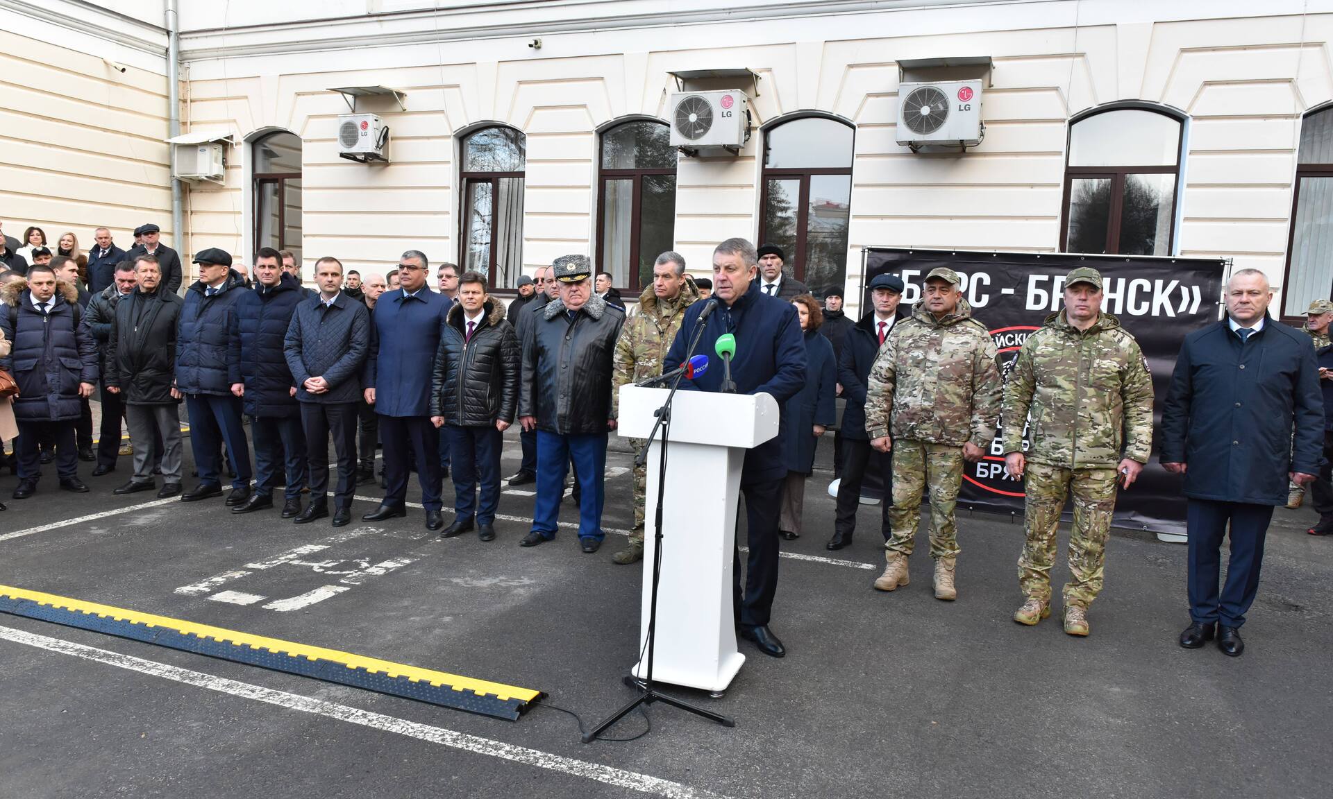 Глава региона передал командиру «БАРС-Брянск» Сергею Антошину ключи от трёх новых автомобилей УАЗ и сертификат на 5 дизельных генераторов и 100 радиостанций.