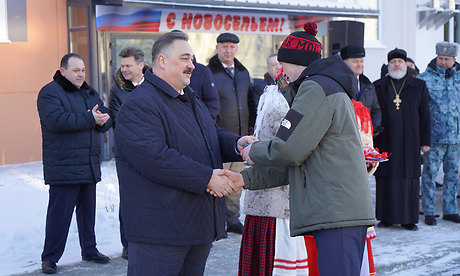 С ответным словом от обладателей новых квартир выступили Наталья Игнатова и Юрий Канавец. После завершения торжественной части мероприятия почетные гости заглянули в жилище одного из новоселов. По доброй традиции первым в квартиру запустили пушистого питомца, после чего хозяин квартиры Юрий Канавец пригласил гостей на чаепитие.