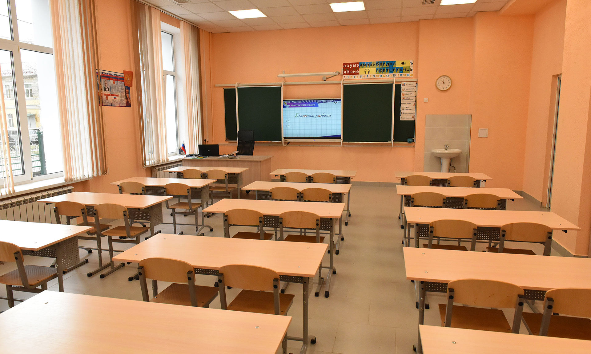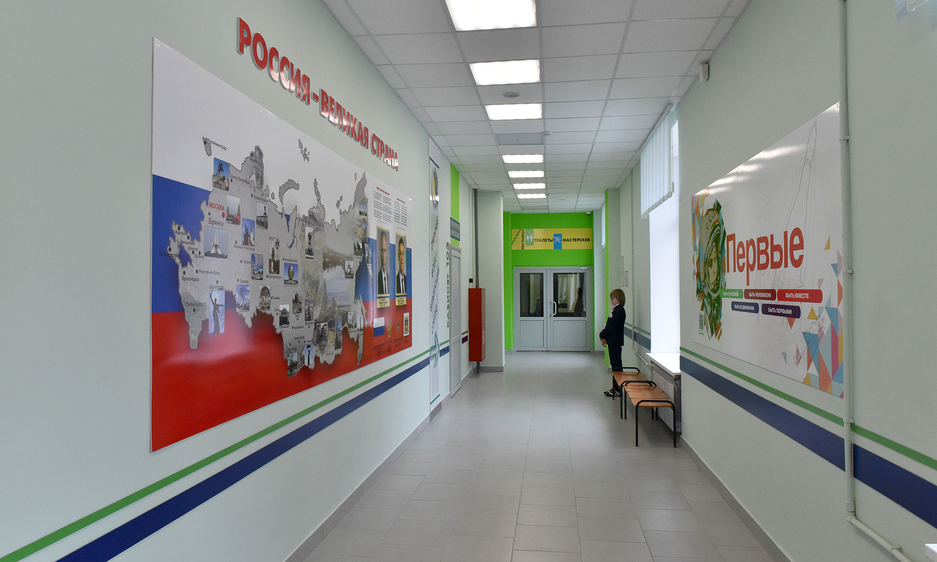 Капремонт в основном здании Брянского городского лицея № 1 имени А. С. Пушкина начался в прошлом году, по контракту должен завершиться к июню этого года, но здесь уже практически все готово, чтобы лицеисты вернулись в свой родной дом — готовность 95%.