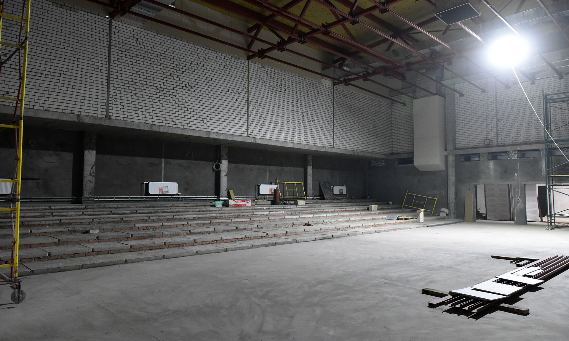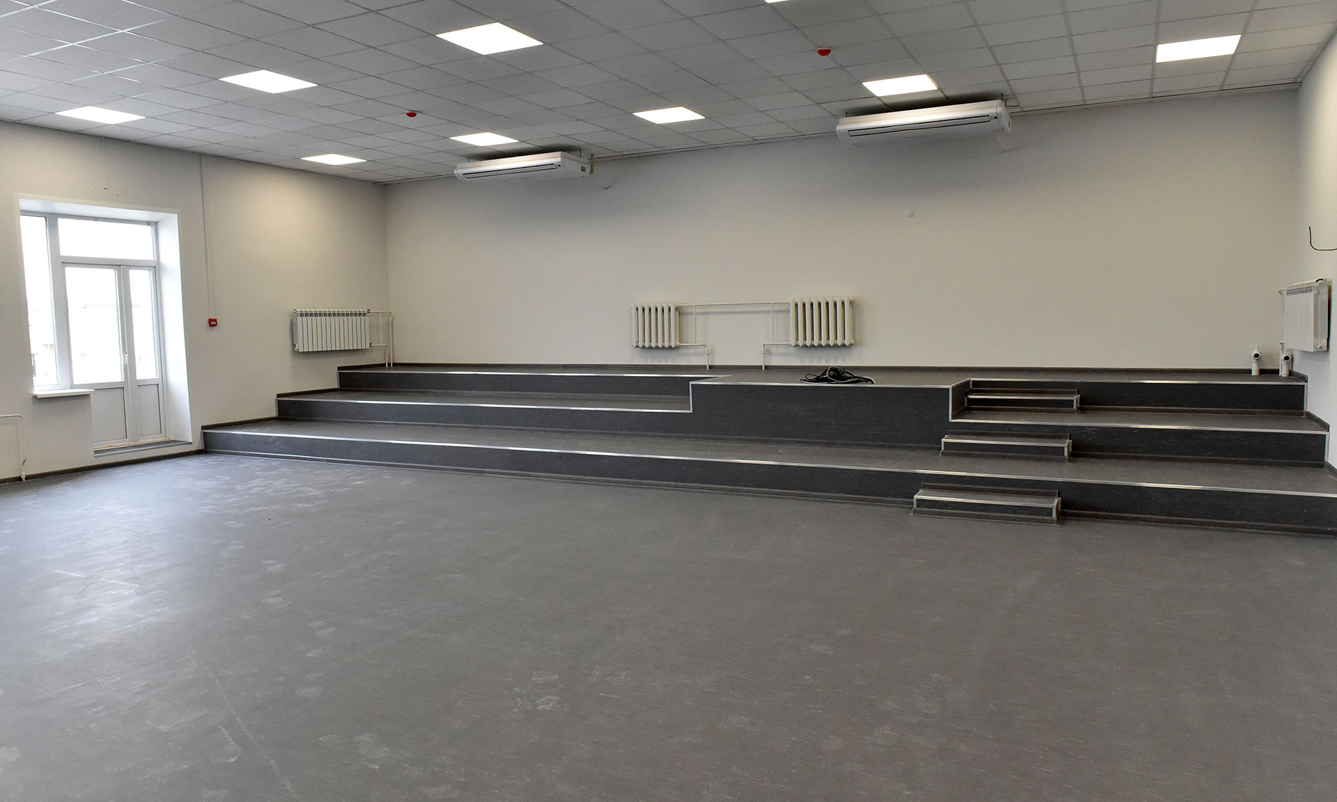 Отремонтированы кровля и фасад, потолки, инженерные коммуникации, входные группы, лестницы, полностью реконструирован актовый зал — теперь здесь есть современная новая сцена. Остались последние штрихи: строители завершают работы в цокольном этаже, закуплено современное оборудование и мебель.