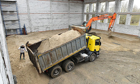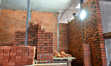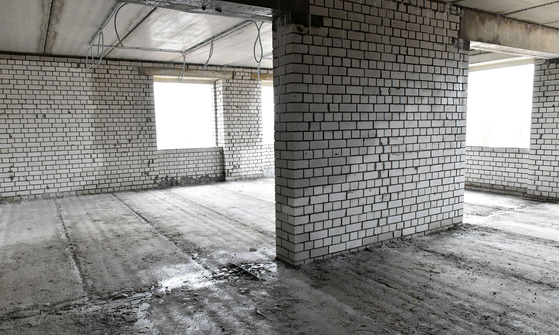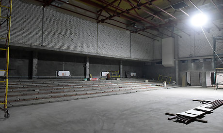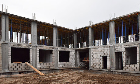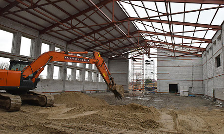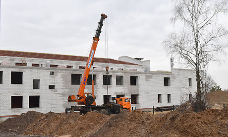Здесь уже завершена кладка стен, ведется монтаж кровли, наружных инженерных сетей — теплотрассы, водопровода, канализации, разводка сетей коммуникаций в помещениях спортзала.