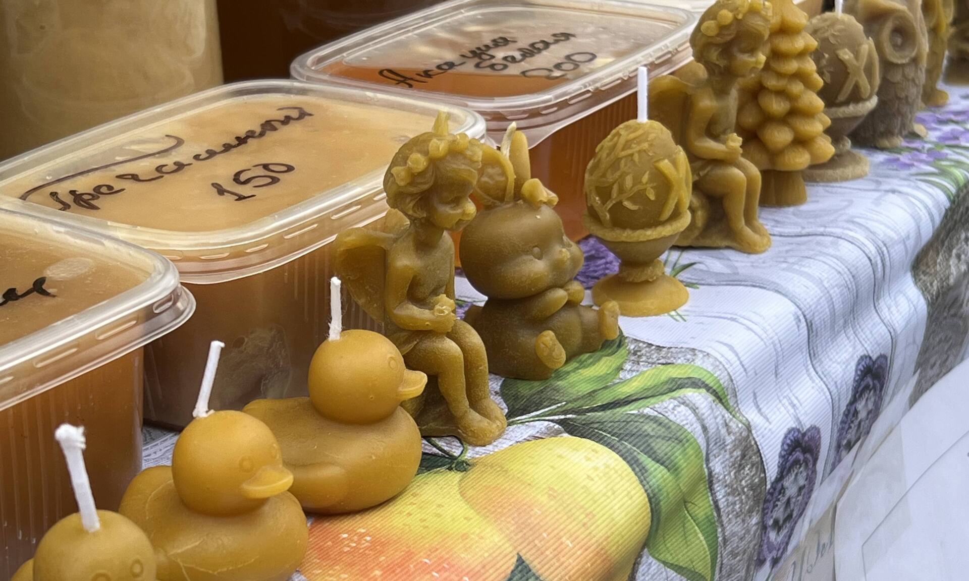 На ярмарке в широком ассортименте представлены картофель, свекла, морковь, капуста, лук репчатый, молочная продукция (молоко, творог, сметана, йогурты, сыр), яблоки, мед, саженцы, цветы.