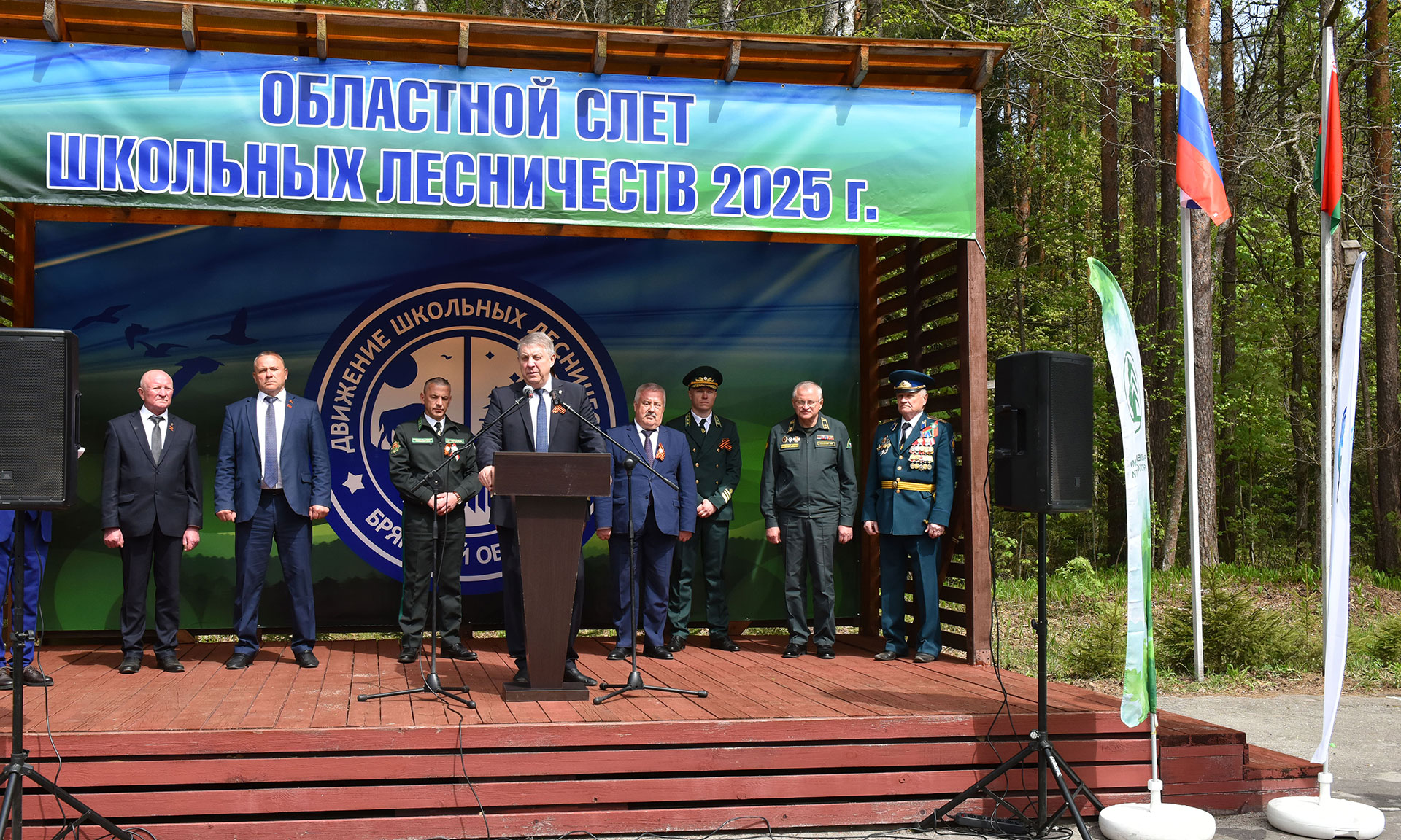 6 мая на мемориальном комплексе «Лесникам-партизанам» в Брянском районе состоялась церемония открытия девятнадцатого областного слета школьных лесничеств Брянской области и открытие памятного знака «Лесникам-партизанам России и Беларуси».
