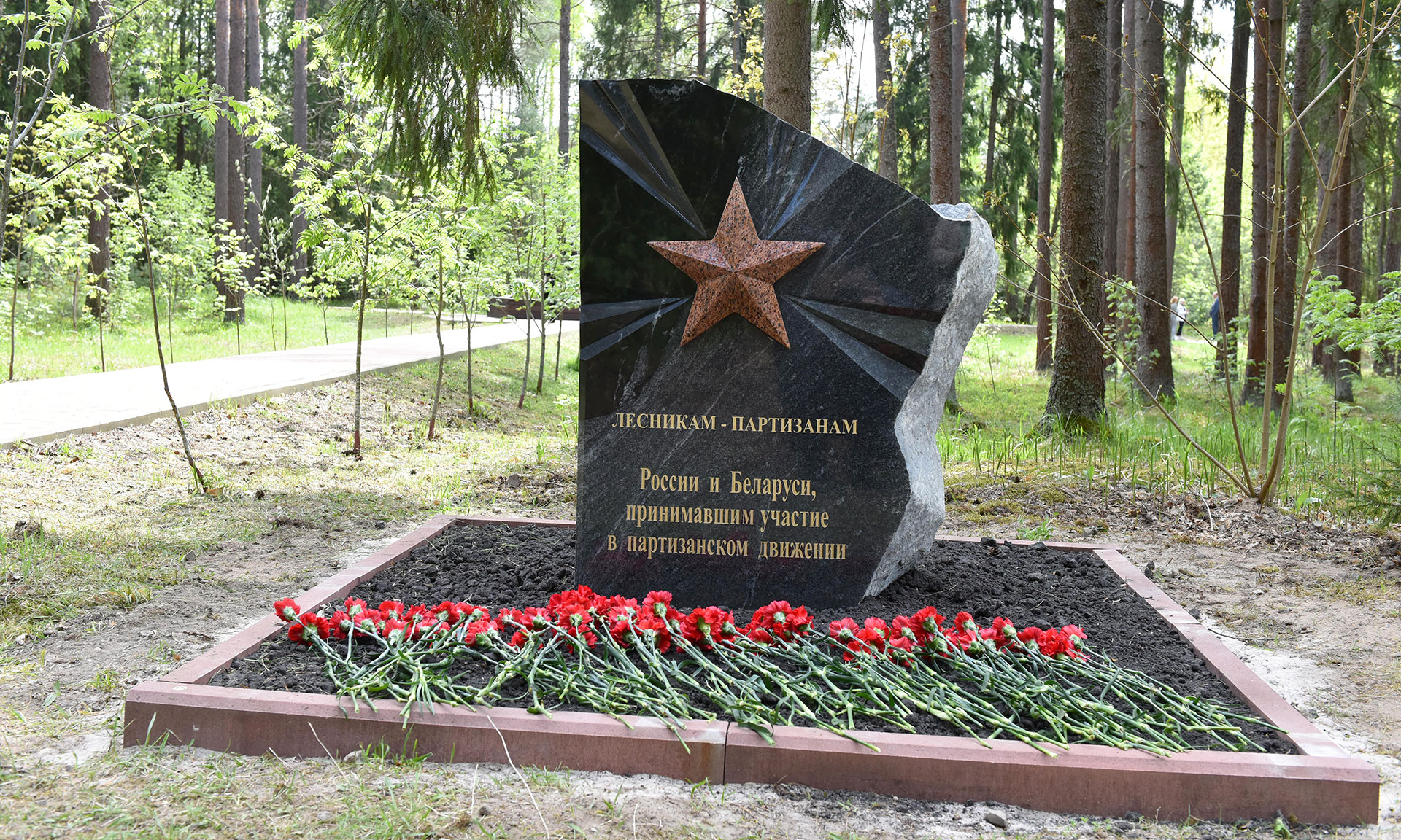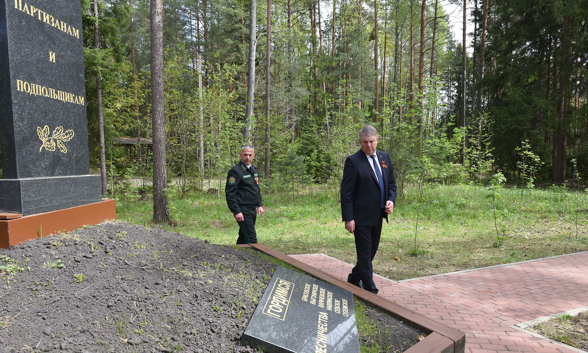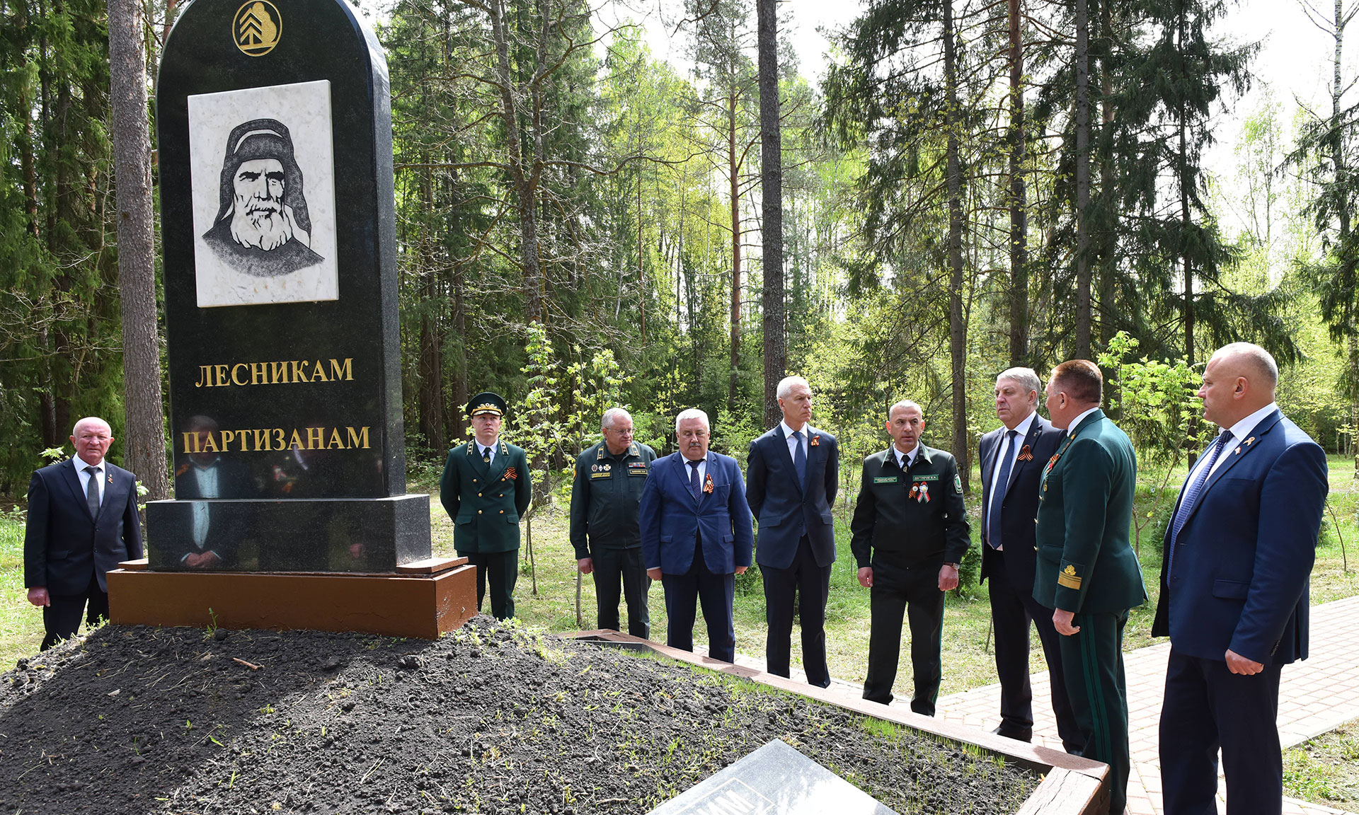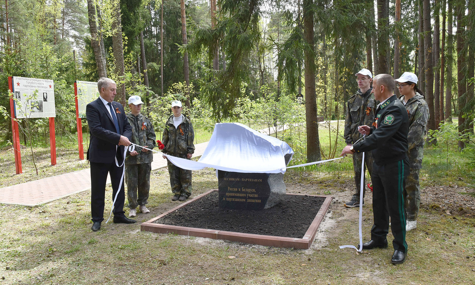 В преддверии празднования 80-й годовщины Победы в Великой Отечественной войне почетные гости открыли памятный знак «Лесникам-партизанам России и Беларуси, принимавшим участие в партизанском движении».