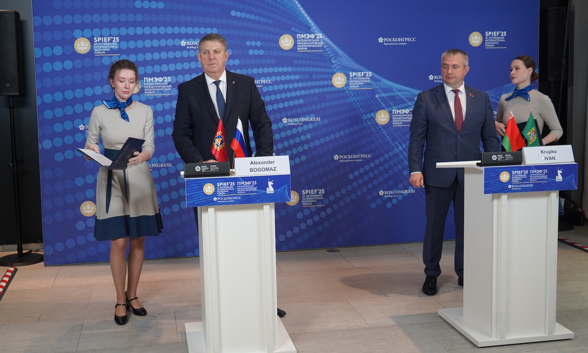 20 июня на полях Петербургского форума Александр Богомаз и Иван Крупко обсудили гуманитарные и экономические связи между регионами.