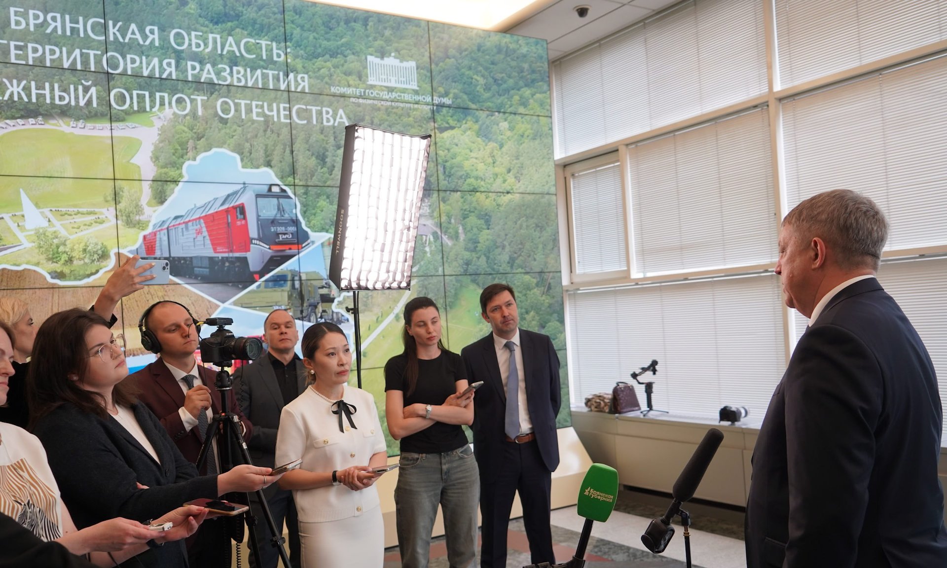 — Брянская область — территория развития, надежный оплот Отечества! Признателен Председателю Государственной Думы Вячеславу Викторовичу Володину, нашим депутатам, инициатору выставки — Олегу Васильевичу Матыцину за то, что нас поддержали.