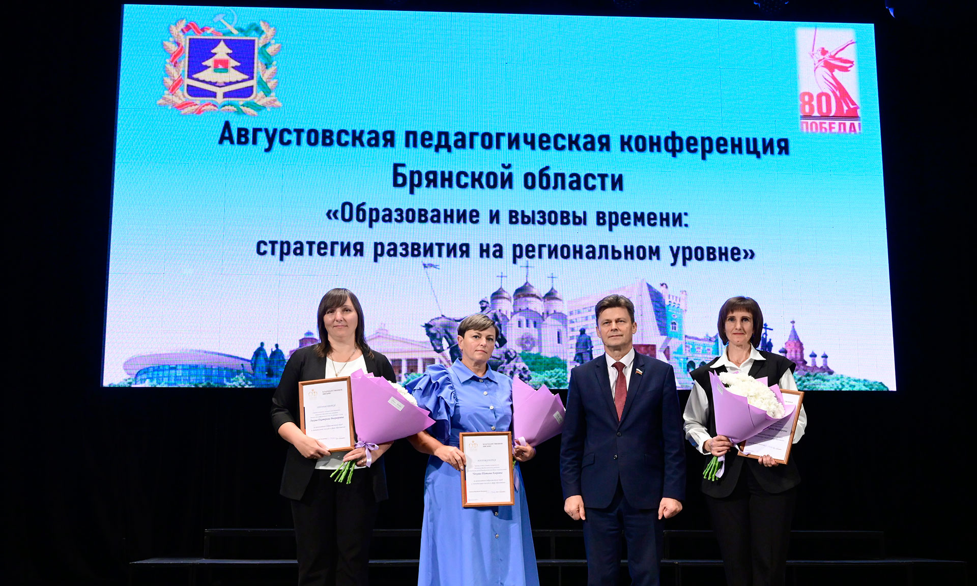 Педагогов поздравили председатель Брянской областной Думы Валентин Суббот и сенатор Российской Федерации Василий Попадайло.