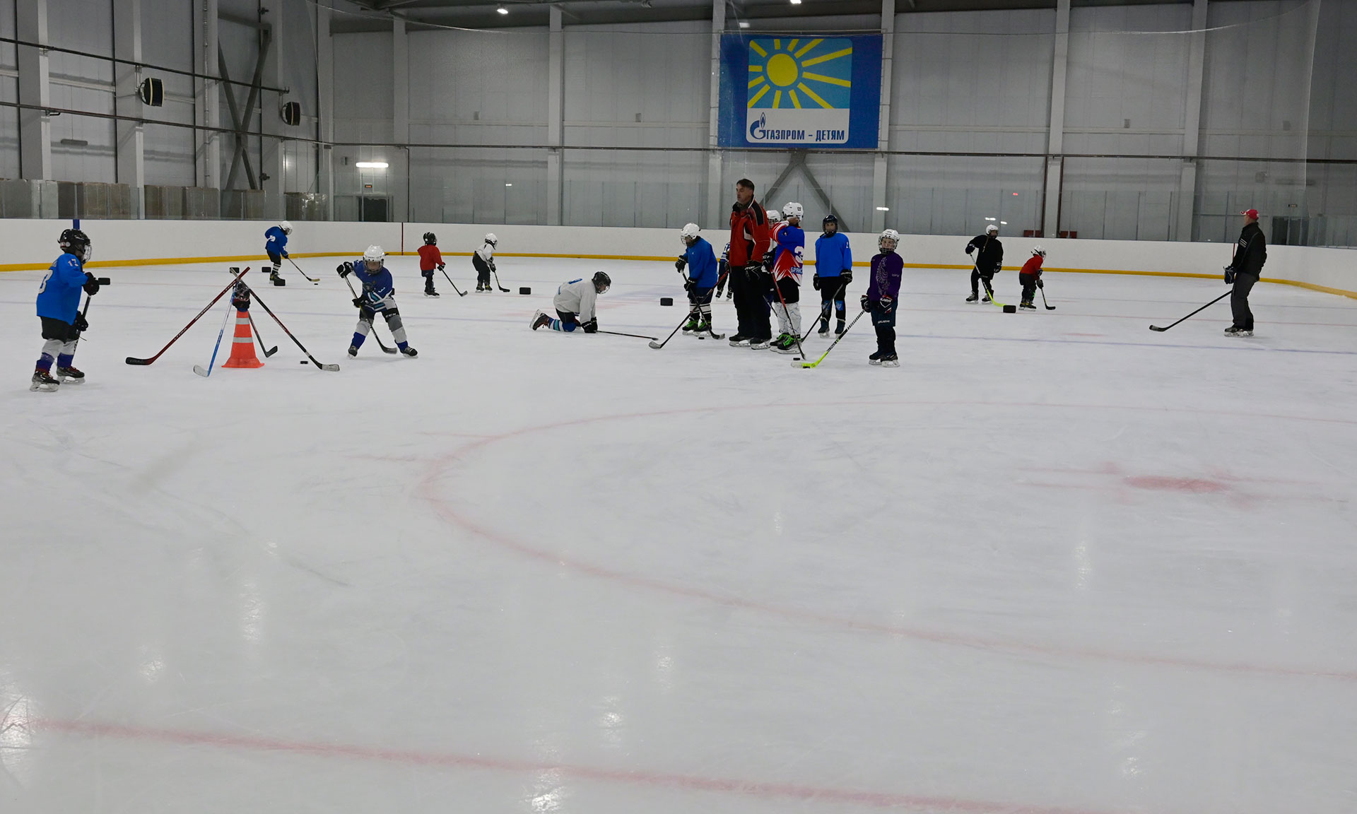 В ледовом дворце Суземки полным ходом идет подготовка к соревновательному сезону. Пока мальчишки и девчонки разных возрастов тренируются все вместе.