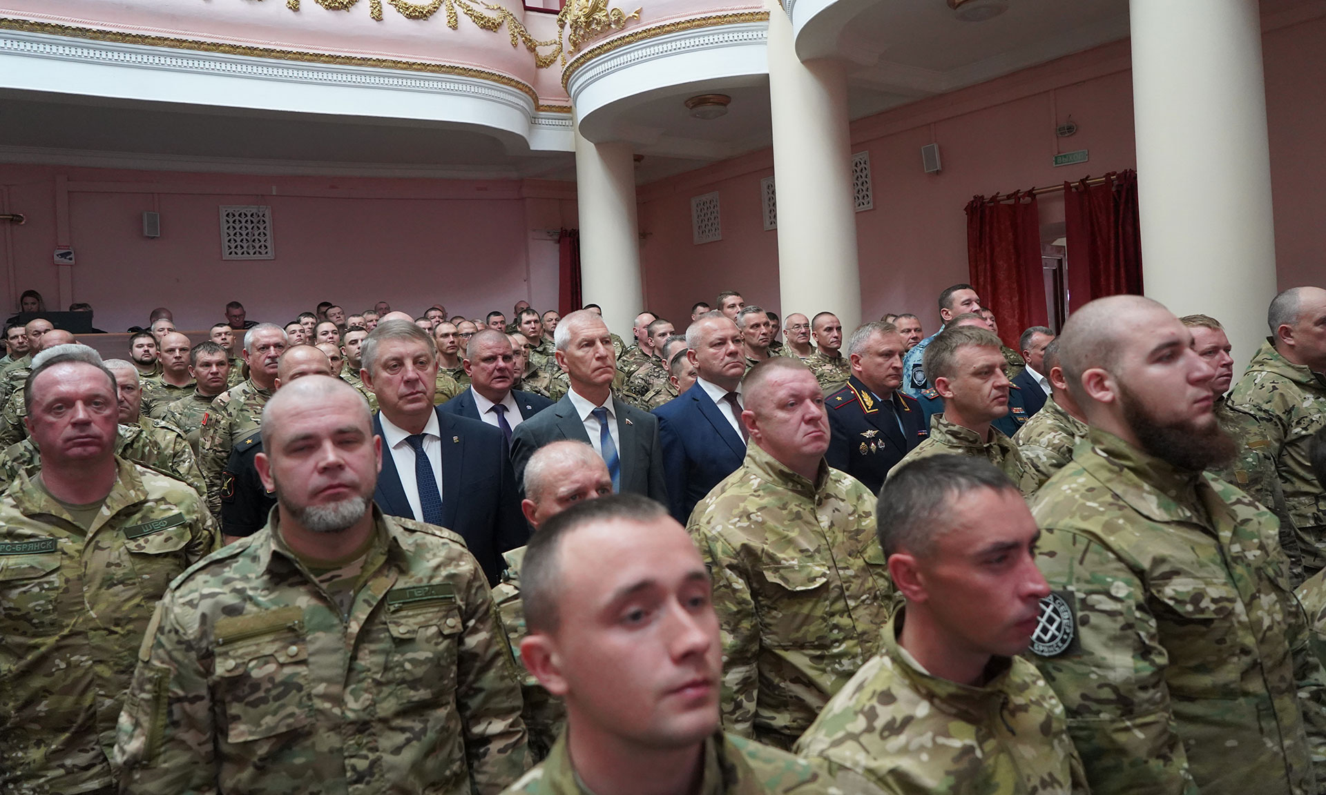 Об оценке государством нашего БАРСа говорят те награды, что сегодня получили бойцы: 8 человек удостоены государственных наград Российской Федерации, 28 — наград Министерства обороны, 83 — наград от Правительства Брянской области, Брянской областной Думы, 637 добровольцев награждены благодарностями и почетными грамотами командира БАРСа.