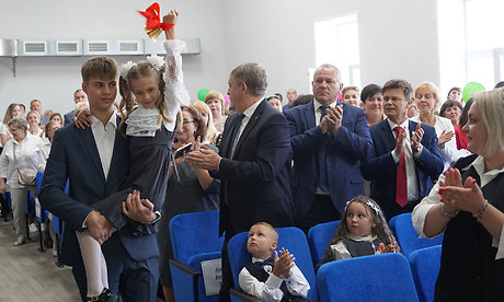 — Сегодня в нашей великой стране большой праздник — День знаний. Все школы, от Камчатки до Калининграда, открыли свои двери. В школе № 13 имени Героя Советского Союза Ильи Борисовича Катунина — двойной праздник, не только 1 сентября, но и открытие, можно сказать, новой школы.