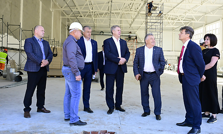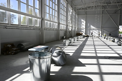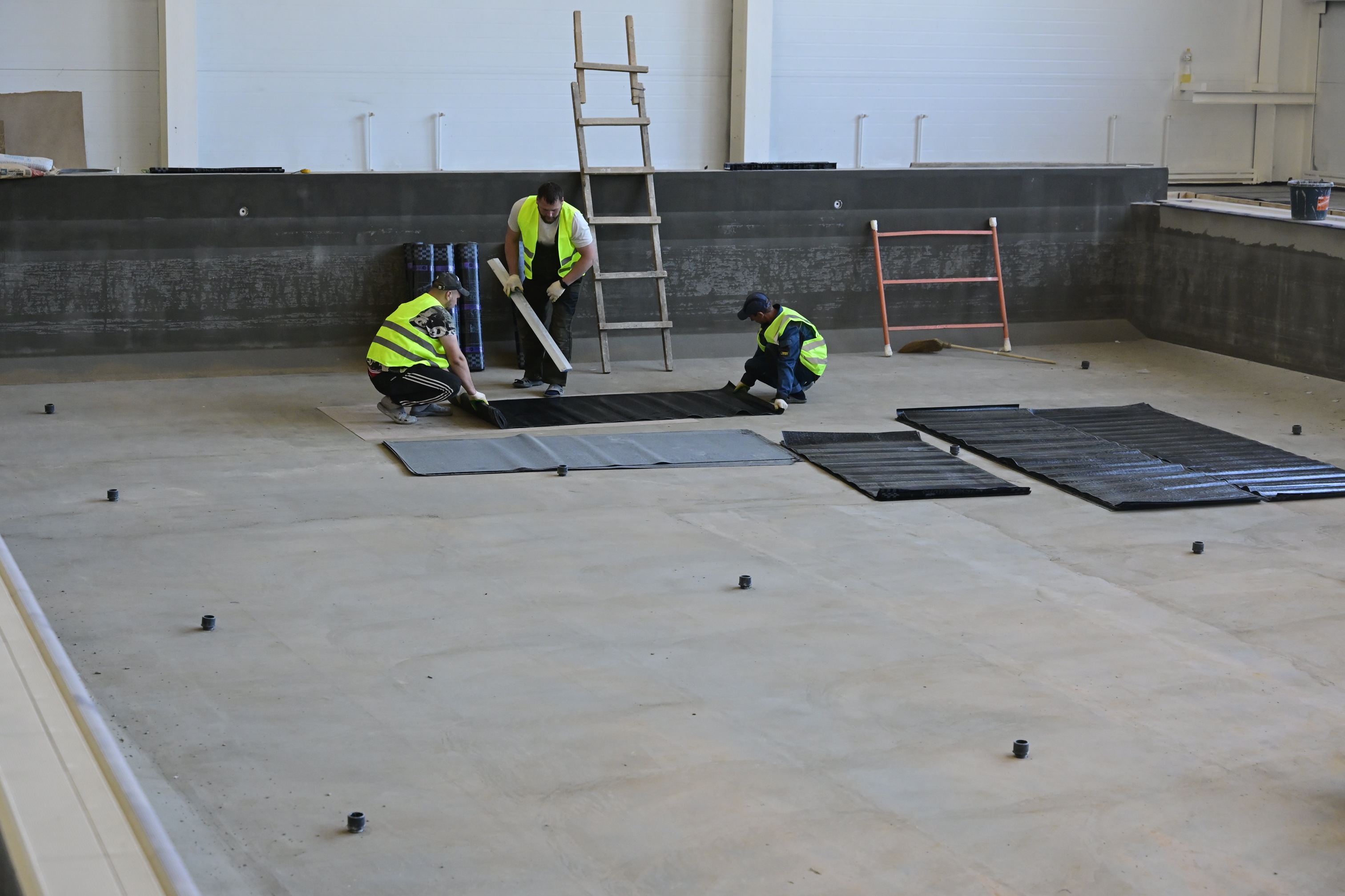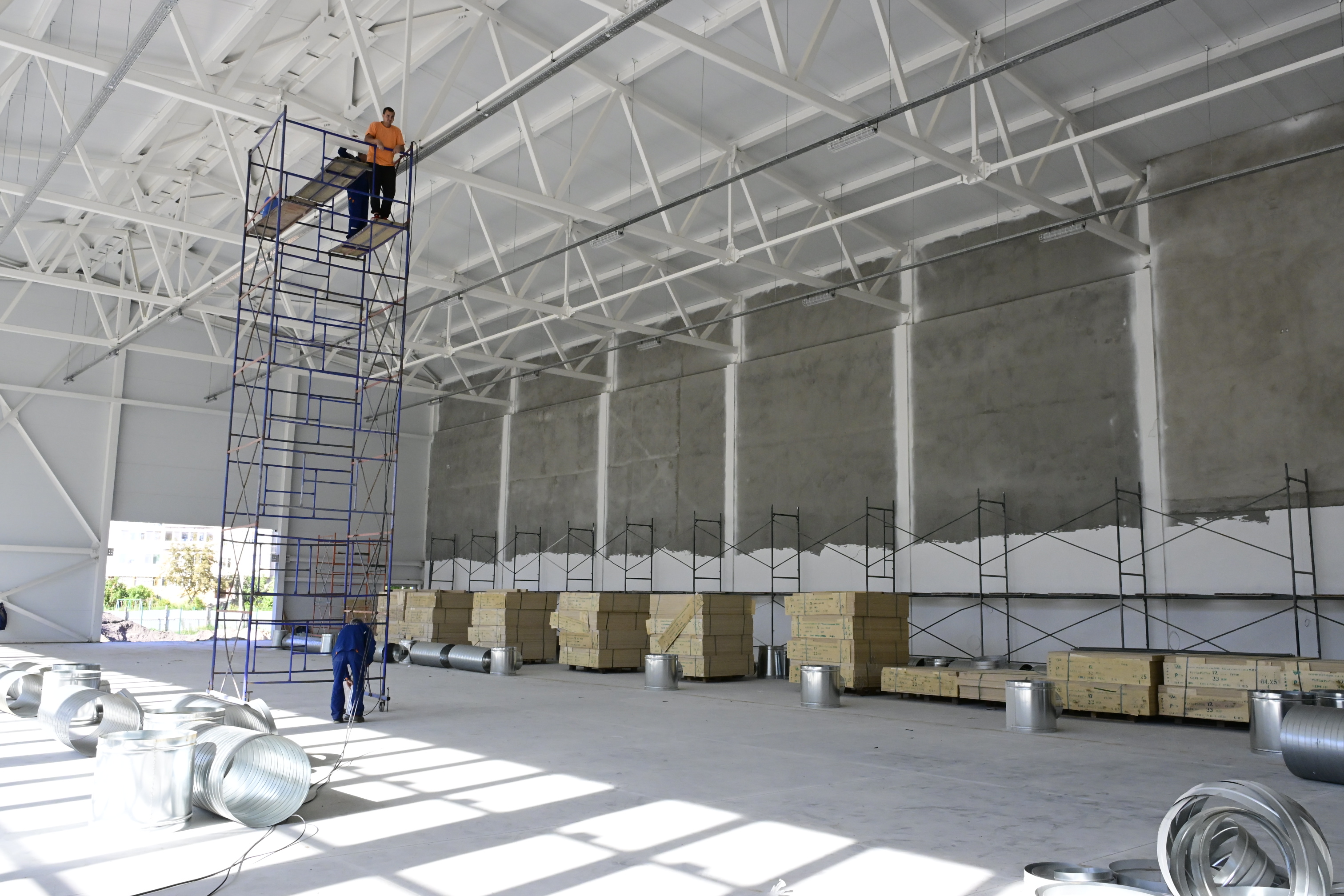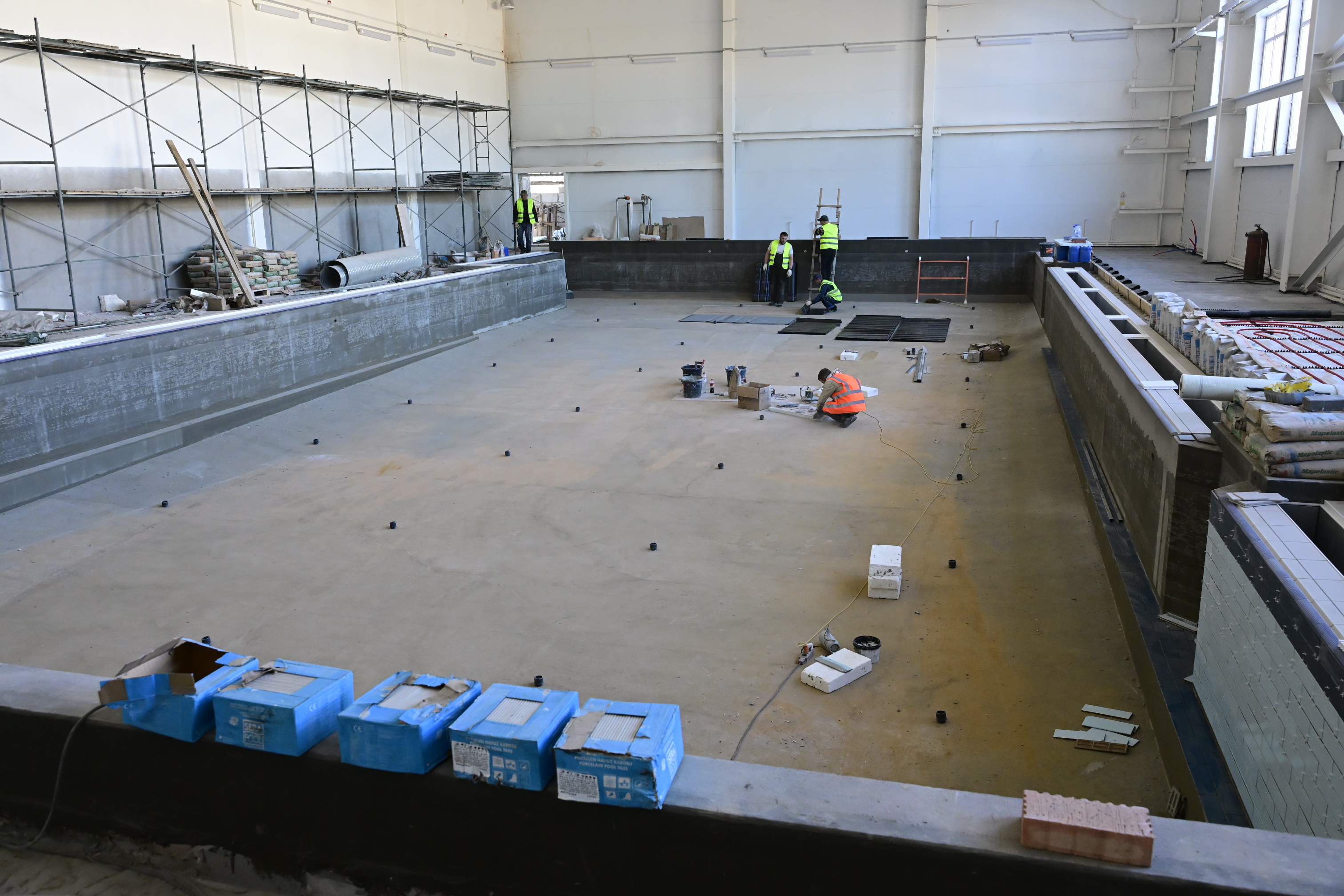 Объект должны сдать до конца года, сейчас техническая готовность — около 75%. Чаша бассейна проходит испытания на герметичность. Установлены оконные и дверные блоки, выполнены работы по монтажу отопления, электроснабжения. Смонтирована кровля, выполнены работы по прокладке наружных сетей водоснабжения, водоотведения. До конца сентября должна поступить блочно-модульная котельная.