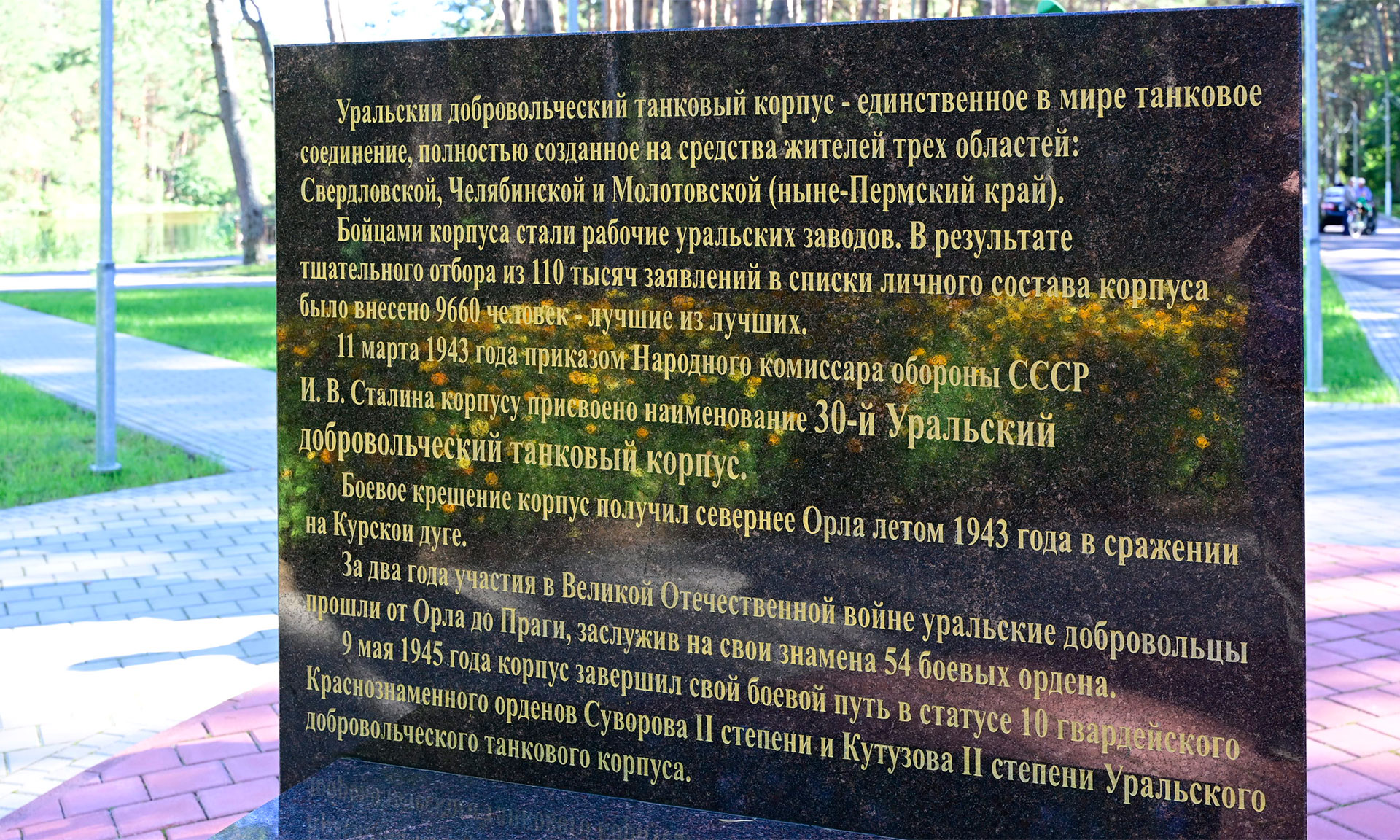 Парк культуры и отдыха в Унече был назван именем Уральских добровольцев в честь бойцов Уральского добровольческого танкового корпуса, первыми вступивших в освобождаемый от немецко-фашистских захватчиков город в сентябре 1943 года.
