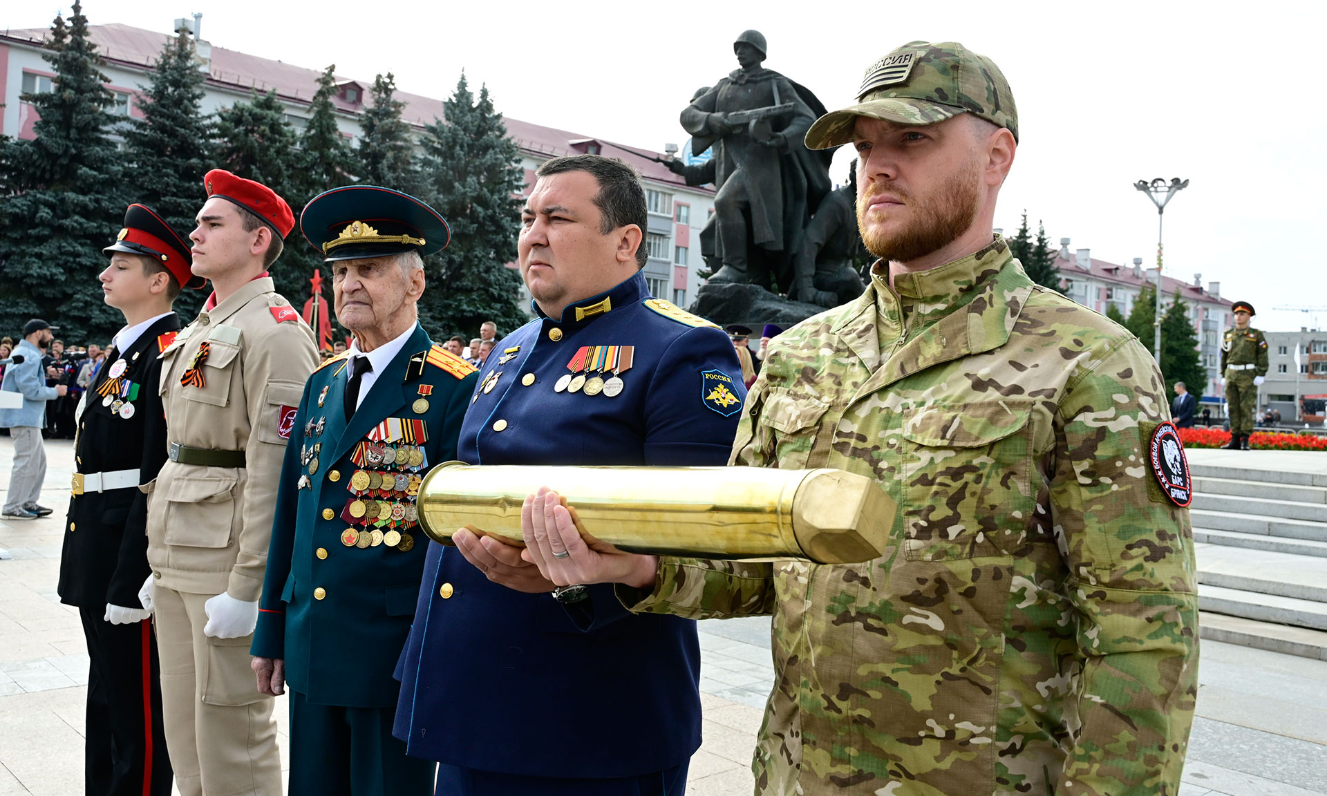 В день 82-й годовщины освобождения Брянщины от немецко-фашистских захватчиков и 1040-летию образования города Брянска состоялась торжественная церемония передачи земли, привезенной с памятных мест муниципальных образований Брянской области, от ветеранов Великой Отечественной войны участникам специальной военной операции в рамках акции «Сила земли».
