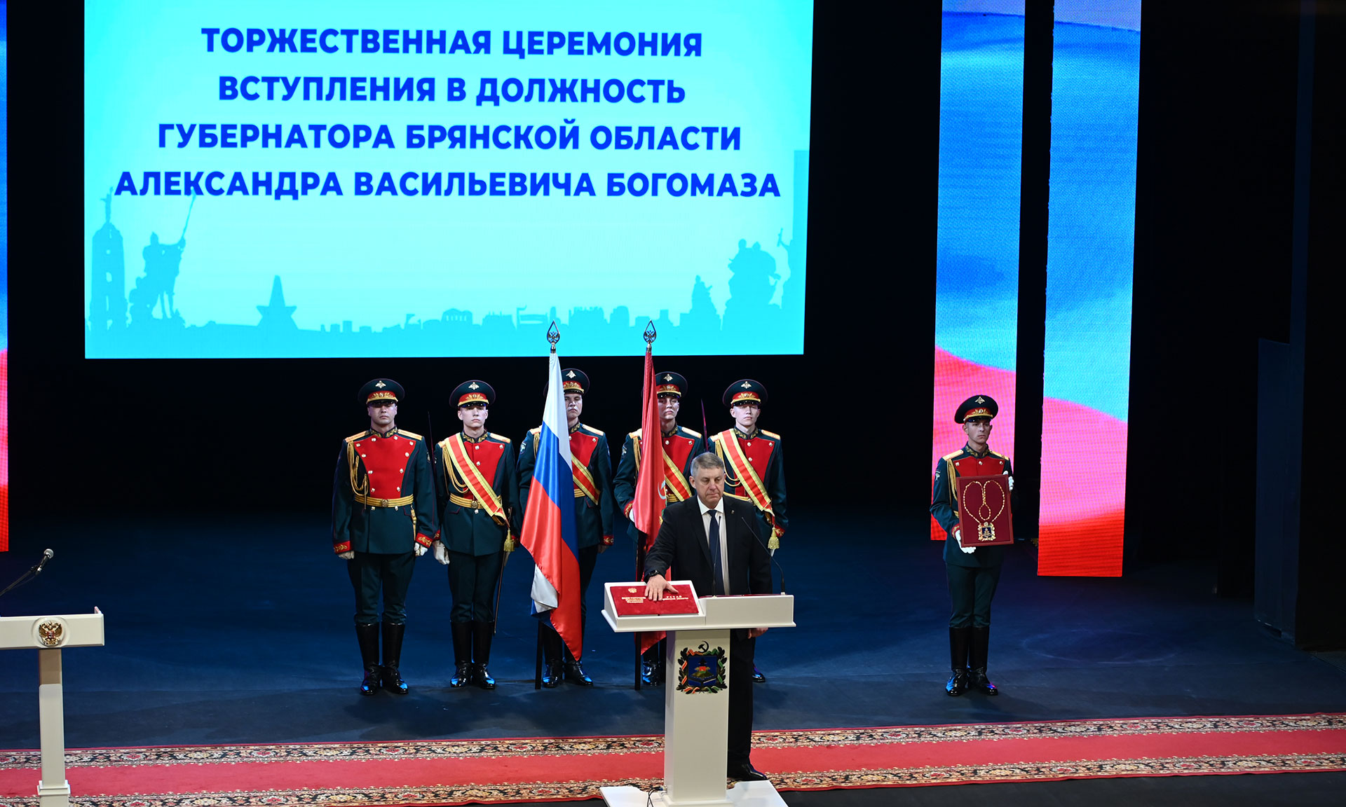 В соответствии с Конституцией Российской Федерации, Уставом Брянской области Губернатор Брянской области Александр Богомаз принес присягу: