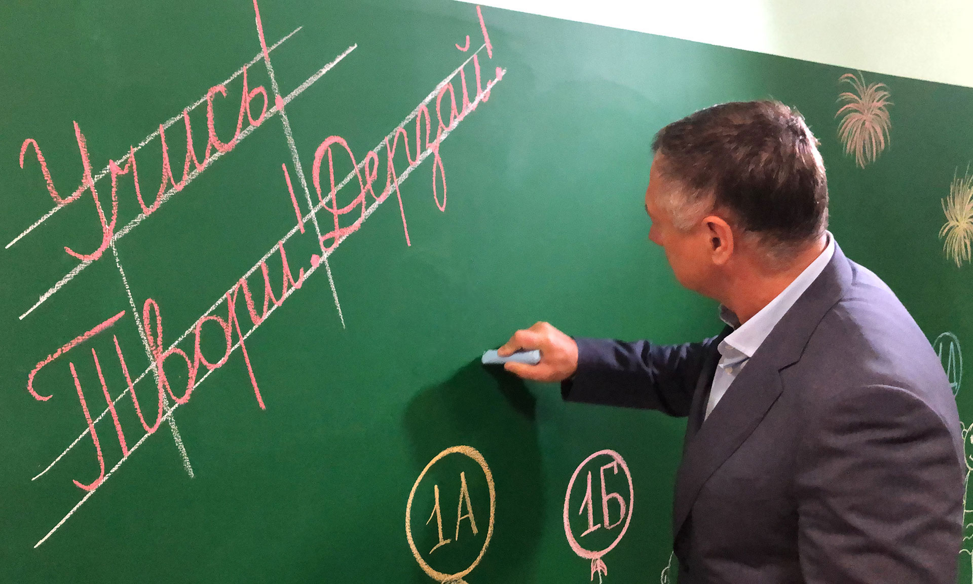 Желаю вам крепкого здоровья, мира, добра, благодарных и талантливых учеников, новых достижений и успехов в вашем нелегком, но таком необходимом труде! Я хочу еще раз выразить глубокую признательность и уважение вашему труду! Я всегда говорил и говорю вам это искренне, потому что я не понаслышке знаю: ваш труд сложный, тяжелый. Но он важный и необходимый для наших детей, нашей страны, потому что будущее — в ваших руках. С праздником! С Днем учителя!