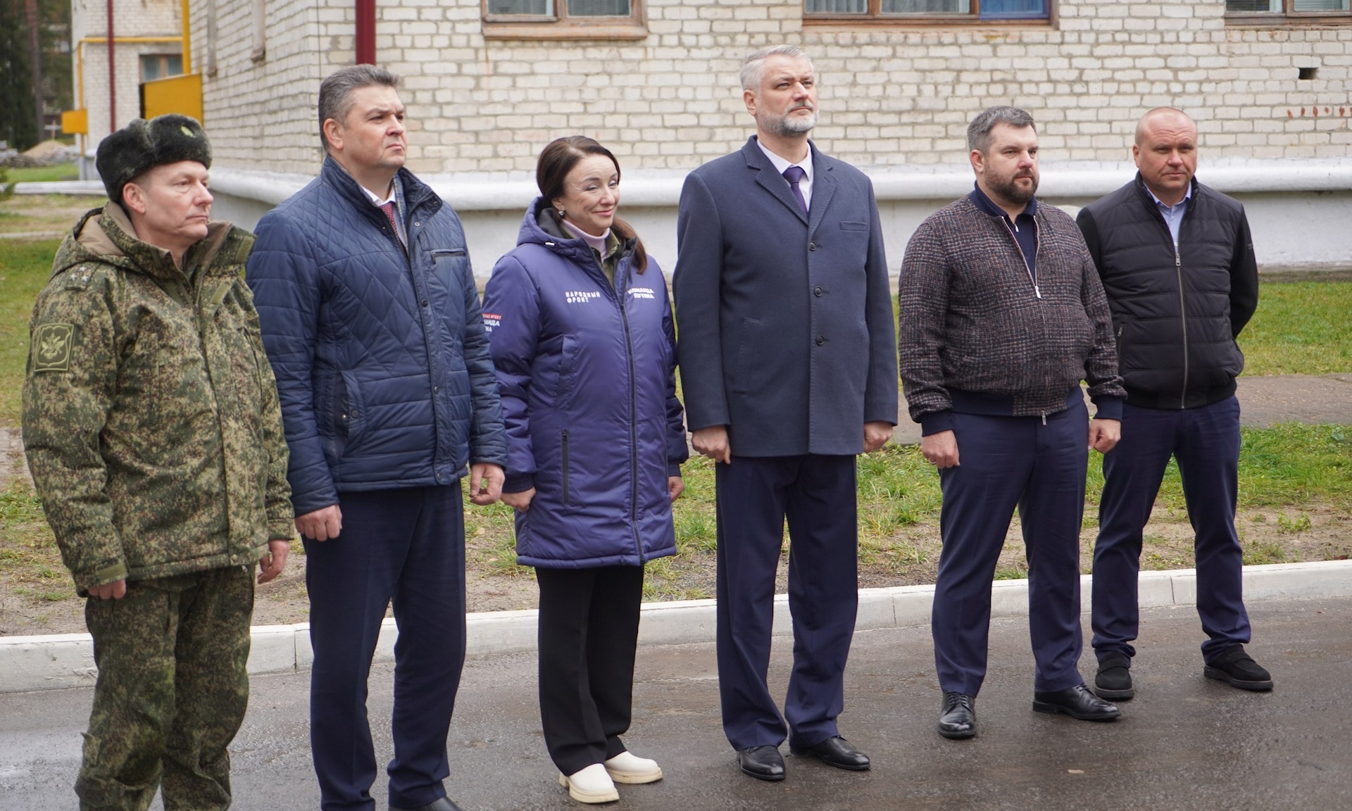 Передать слова приветствия военнослужащим приехали заместитель Губернатора Алексей Жук, главный федеральный инспектор по Брянской области Андрей Дьячук, руководитель регионального исполкома Народного фронта в Брянской области Лариса Третьякова, командир воинской части, полковник Тимофей Гончаров, учредитель компании «Дорстрой 32» Валерий Коваленко.