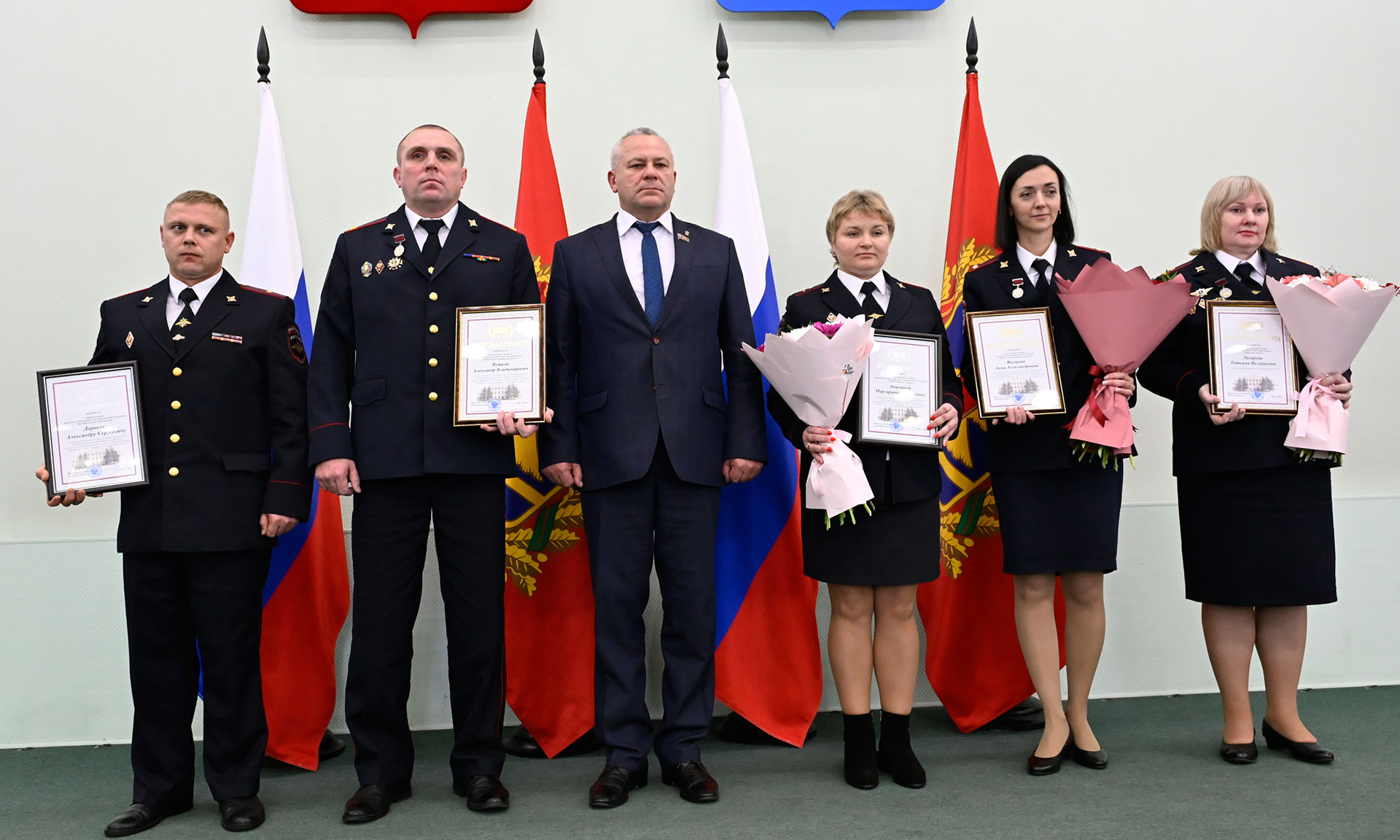 Уважаемый Алексей Владимирович под вашим руководством сотрудники органов внутренних дел последовательно и эффективно работают над улучшением обстановки в регионе, повышением уровня безопасности, участвуют в преодолении чрезвычайных и кризисных ситуаций, предотвращают террористические угрозы.
