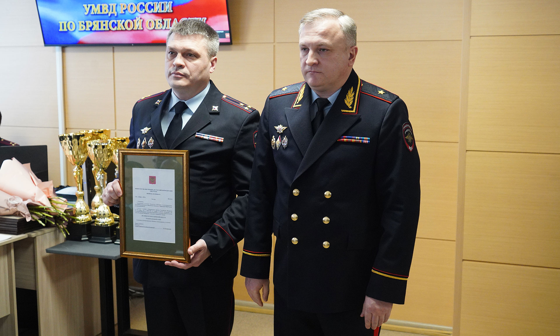 Еще раз выражаю вам благодарность за достойное несение службы, высокий профессионализм при исполнении служебных обязанностей! Желаю успехов в работе на благо жителей Брянской области и России!