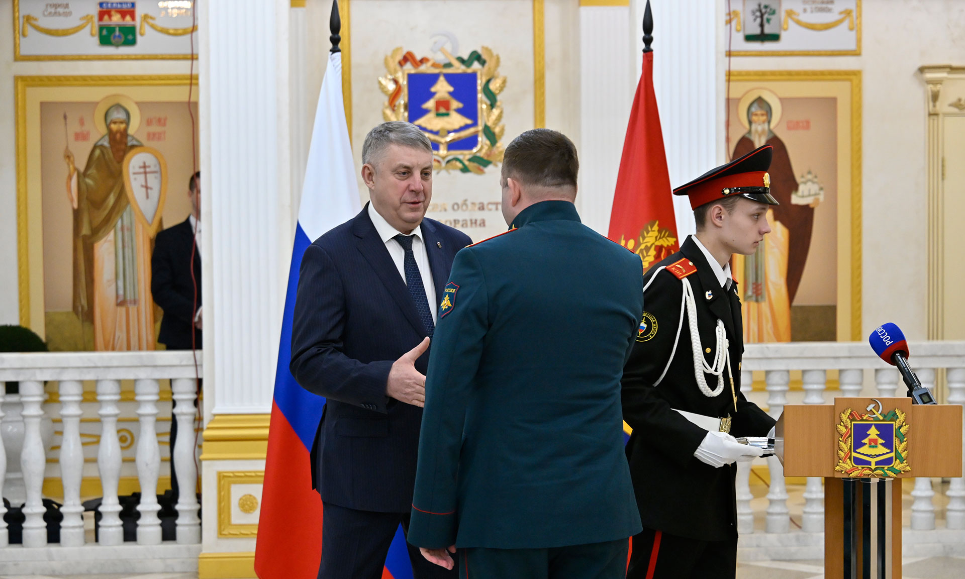 Сегодня в зале присутствует участник президентской программы полковник Евгений Владимирович Вылцан. Он прошел большой боевой путь. Это и Северный Кавказ, и Сирия, и специальная военная операция. Награжден тремя орденами Мужества. Он сейчас отвечает за одно из важнейших направлений в нашей Брянской области — возглавляет комитет Брянской областной Думы по делам ветеранов, участников боевых действий и их семей. Когда он принимал участие в программе «Время героев», я был его наставником.